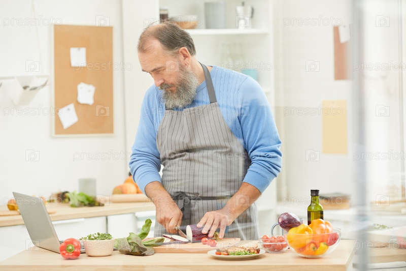 Веселый старший шеф-повар на кухне