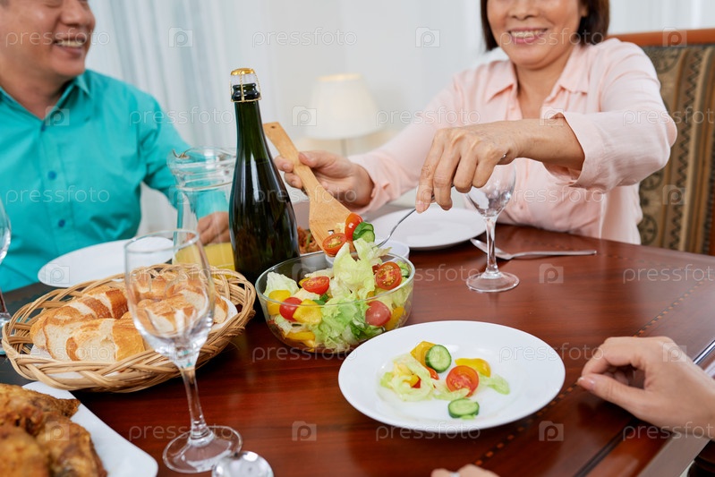 Семья собирается за ужином, наслаждаясь едой