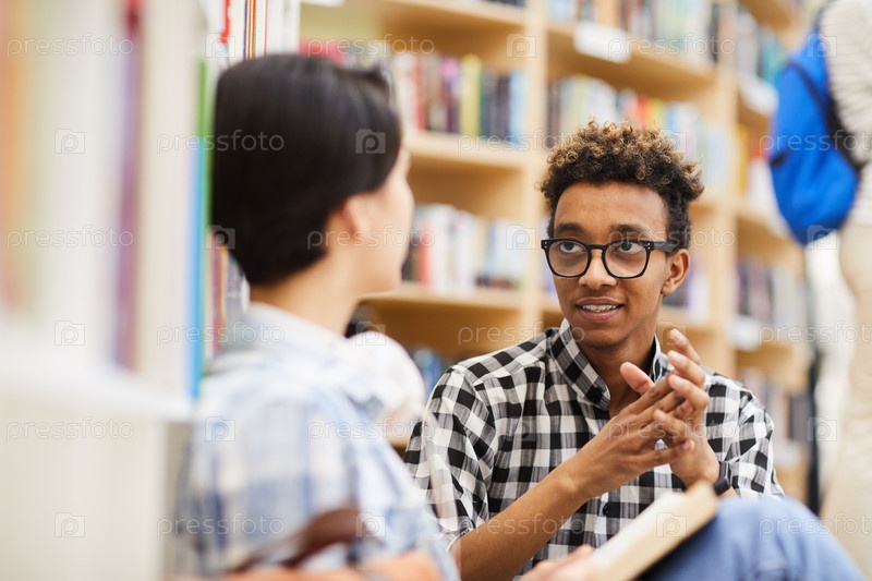 Умные студенты планируют исследовательский проект в библиотеке