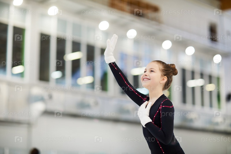Маленький фигурный конькобежчик, размахивающий