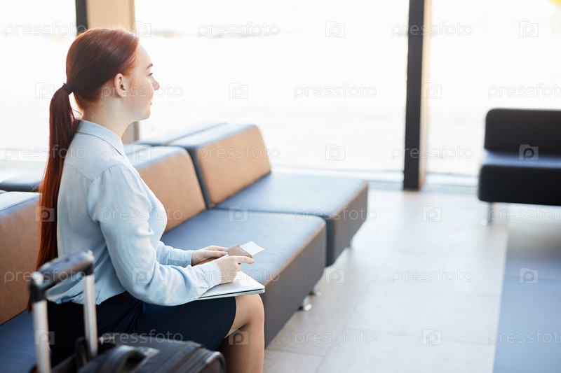 Молодая женщина ждет в аэропорту