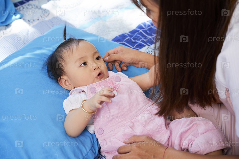 Мать смотрит на своего ребенка