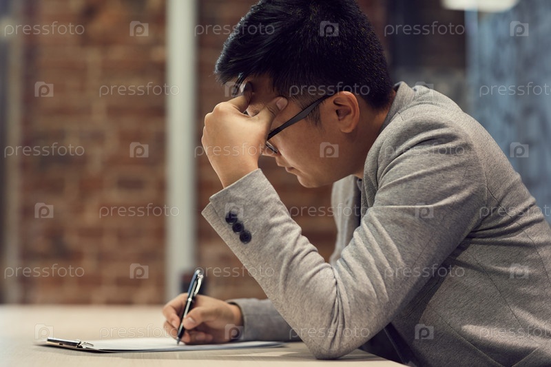 Молодой азиатский мужчина заполняет форму в деловом офисе