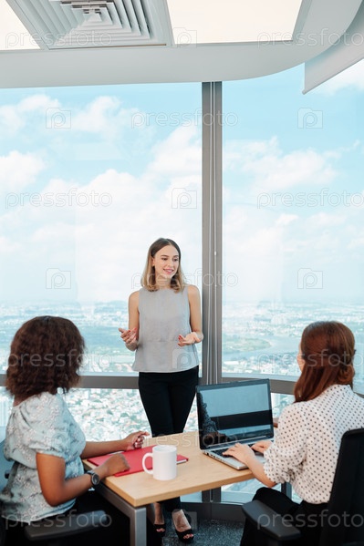 Руководительница разговаривает с коллегами