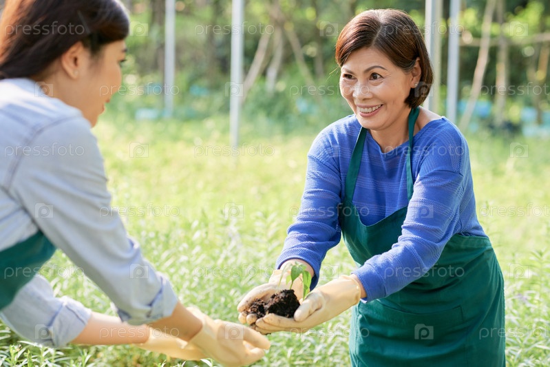 Мать и дочь сажают вместе