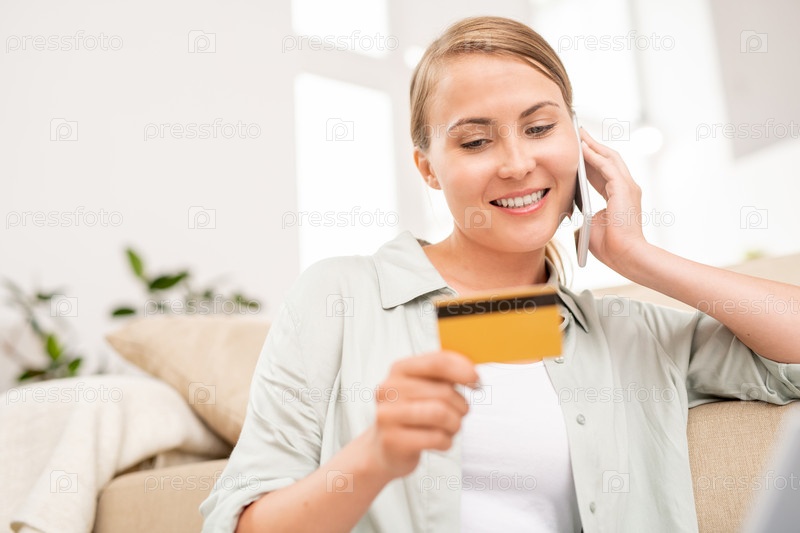 Счастливый молодой клиент интернет-магазина консультируется с менеджером по телефону