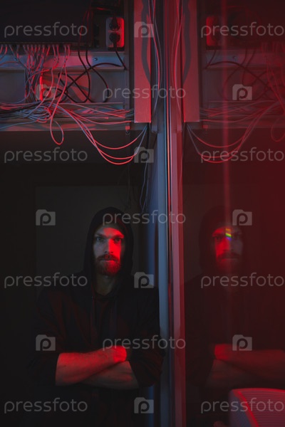 Молодой хакер в серверной комнате