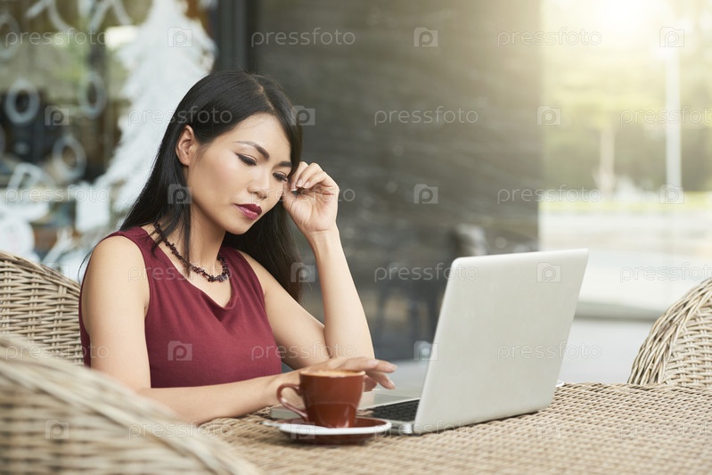 Женщина, работающая в открытом кафе