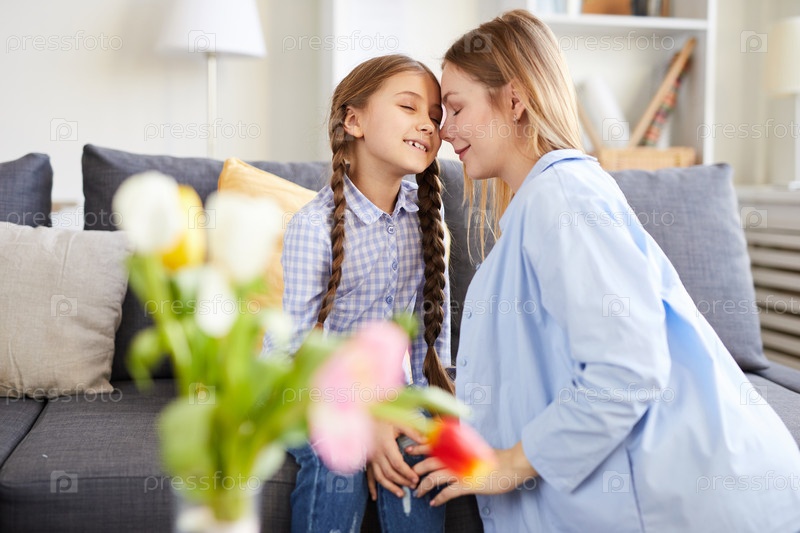 Любящая мама, обнимающая ребенка и любящий ребенок