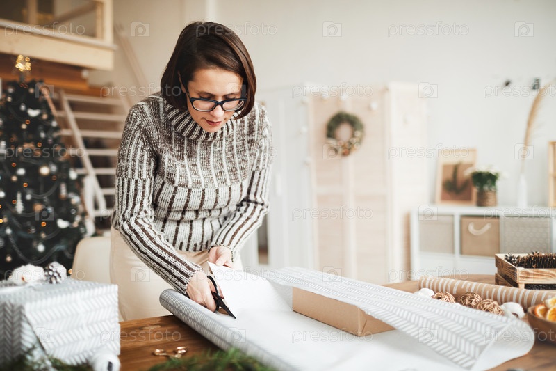 Женщина, украшающая коробку