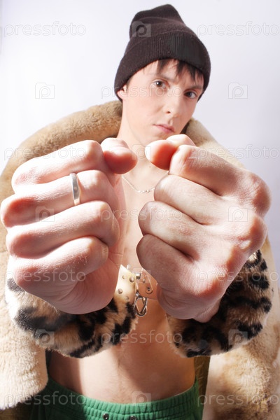 Человек в наручниках на белом фоне