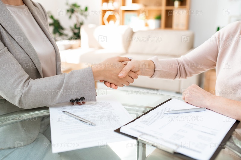 Пожимание рук за столом молодых и зрелых женщин после переговоров