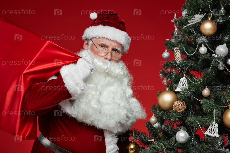 Санта несет подарки на Рождество