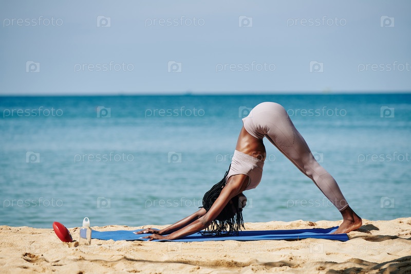 Женщина делает собаку, обращенную вниз