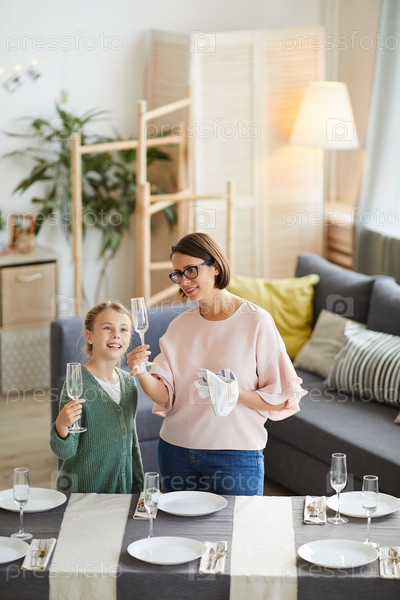 Мать и дочь устраивают стол
