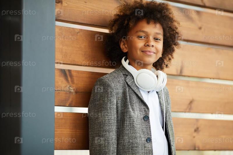 Африканский школьник позирует на улице