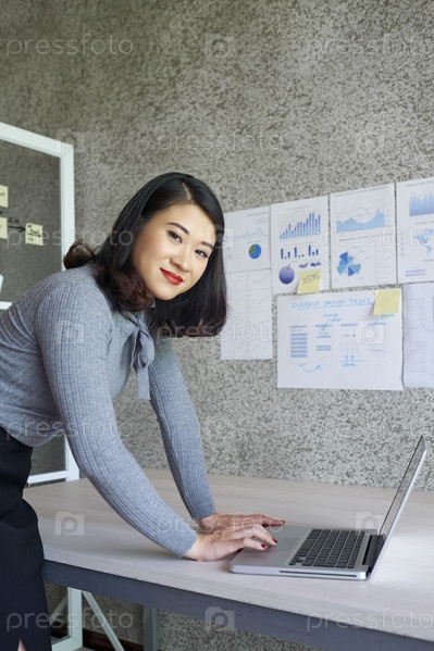 Деловая женщина, использующая ноутбук на презентации