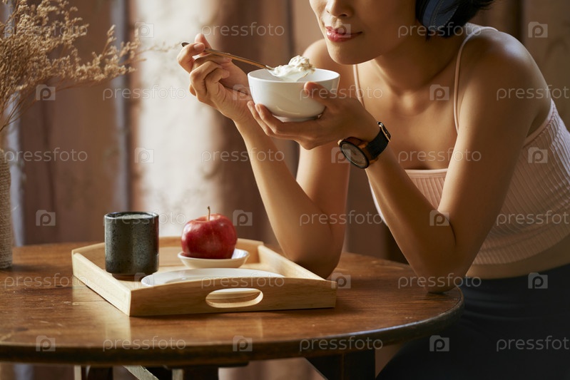 Женщина ест гранолу