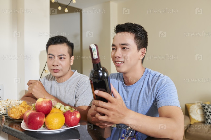 Мужчины пьют вино на домашней вечеринке