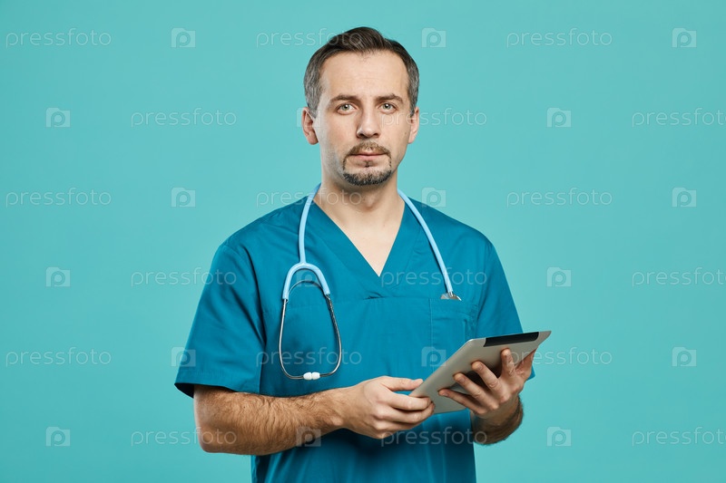 Хирург использует цифровой планшет на работе