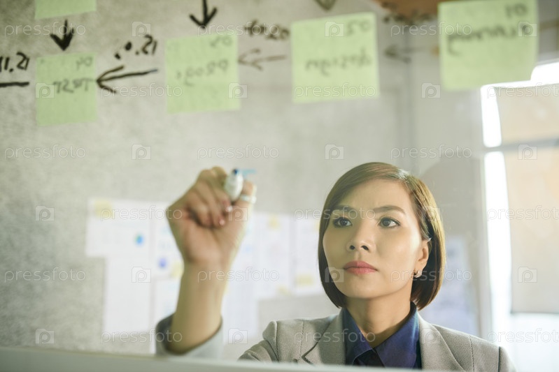 Деловая женщина, которая пишет идеи