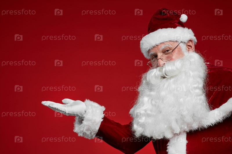 Санта Клаус жестикулирует знак приветствия