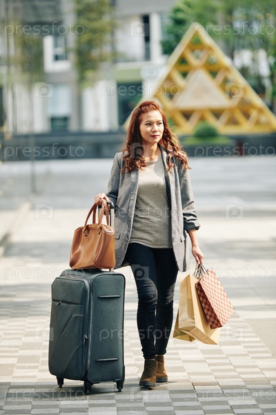 Азиатская женщина, идущая к железнодорожной станции