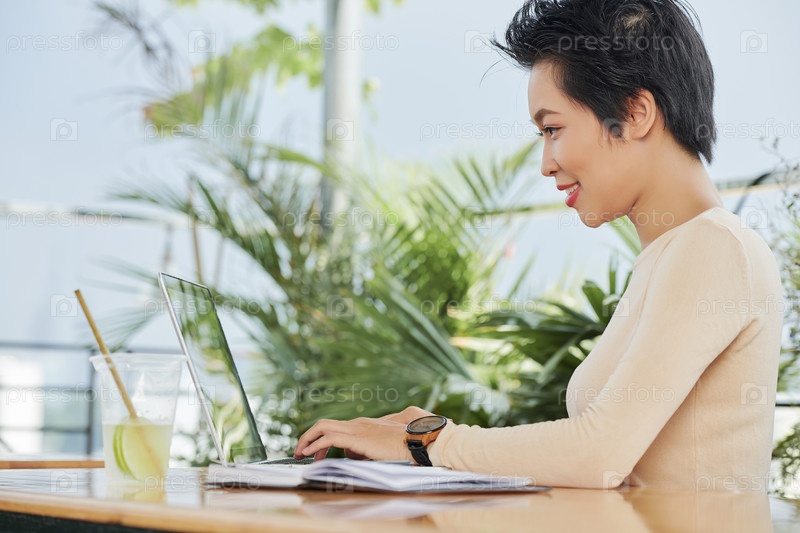 Женщина, работающая онлайн на ноутбуке