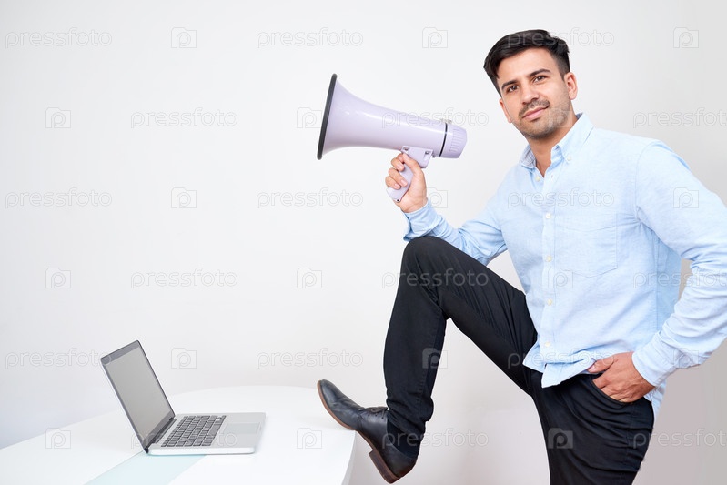 Уверенный бизнесмен с мегафоном