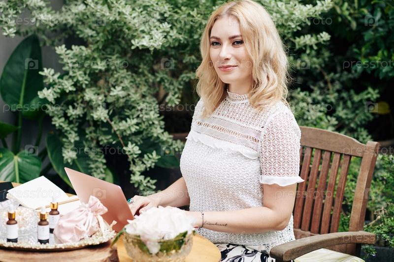 Женщина, работающая на косметическом сайте