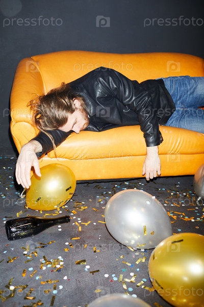 Пьяный мужчина спит на диване в ночном клубе
