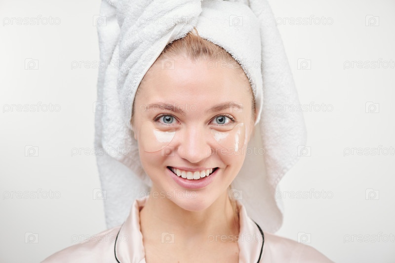 Здоровая молодая женщина с зубчатой улыбкой наслаждается освежающей процедурой
