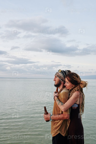 Печальная пара смотрит на морской пейзаж