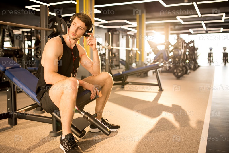 Мужчина отдыхает после тренировки в тренажерном зале