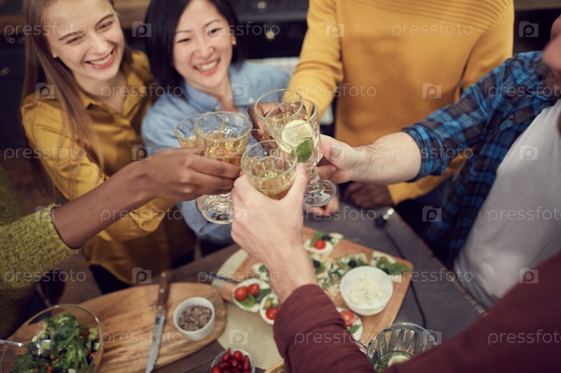 Друзья наслаждаются напитками на вечеринке