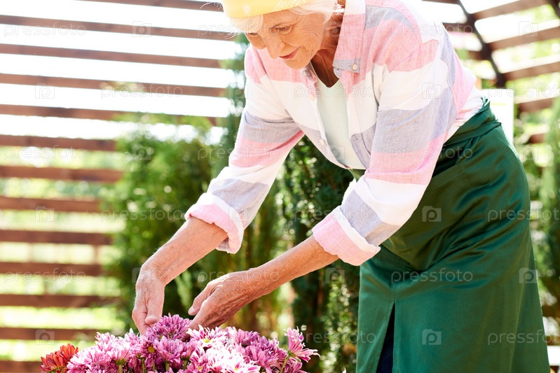 Старшая женщина, выращивающая цветы