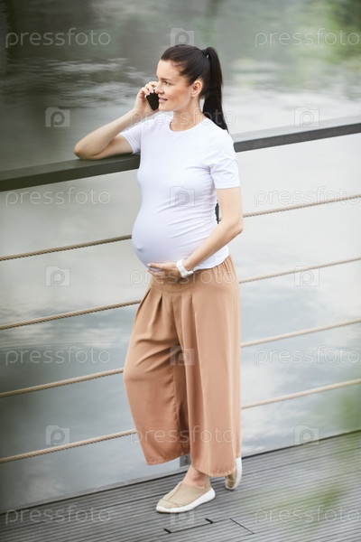 Беременная женщина на мосту