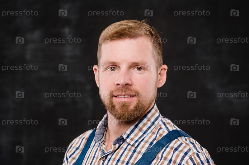 Молодой бородатый техник в квадратной рубашке и синих комбинезонах смотрит на тебя