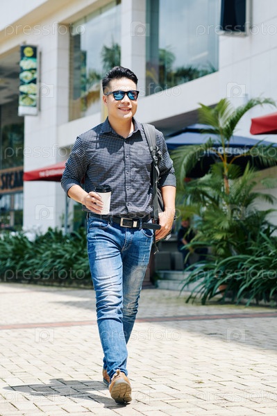 Веселый мужчина, идущий по улице