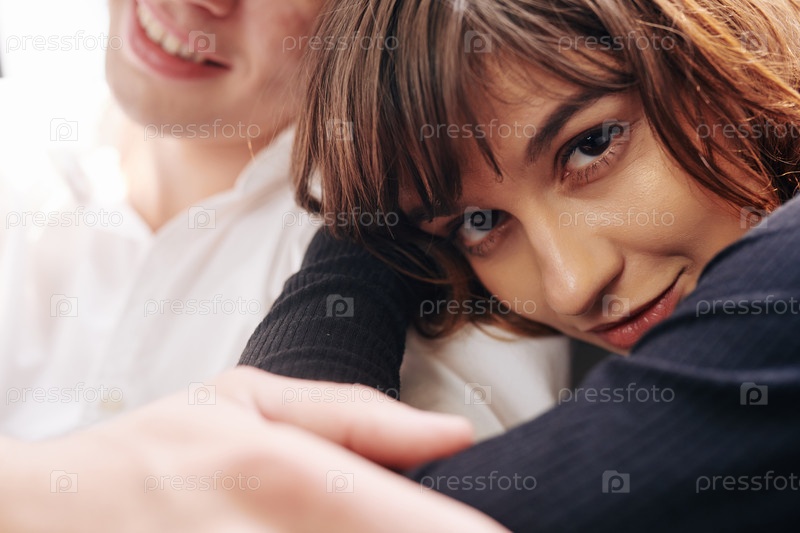 Красивая женщина обнимает мужа