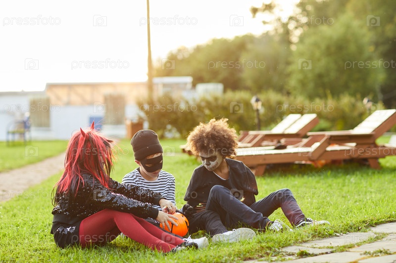 Друзья на открытом воздухе в день Хэллоуина
