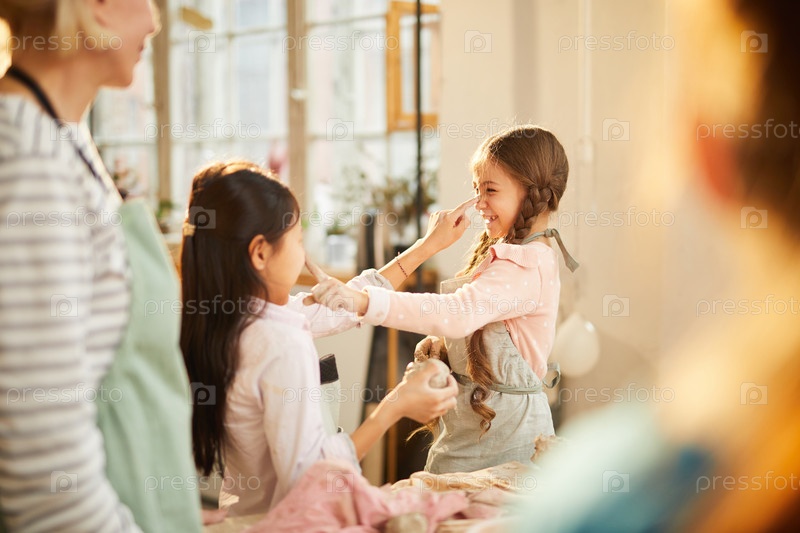 Девочки веселятся на уроке искусства