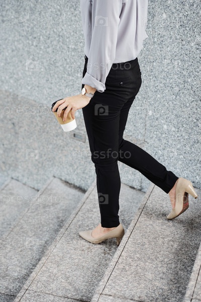 Деловая женщина, спускающаяся по лестнице