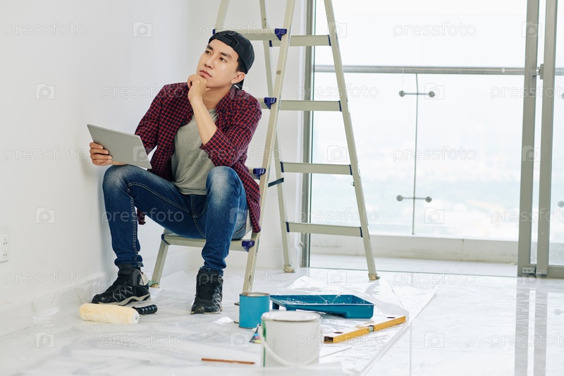 Мужчина смотрит на покрашенную стену