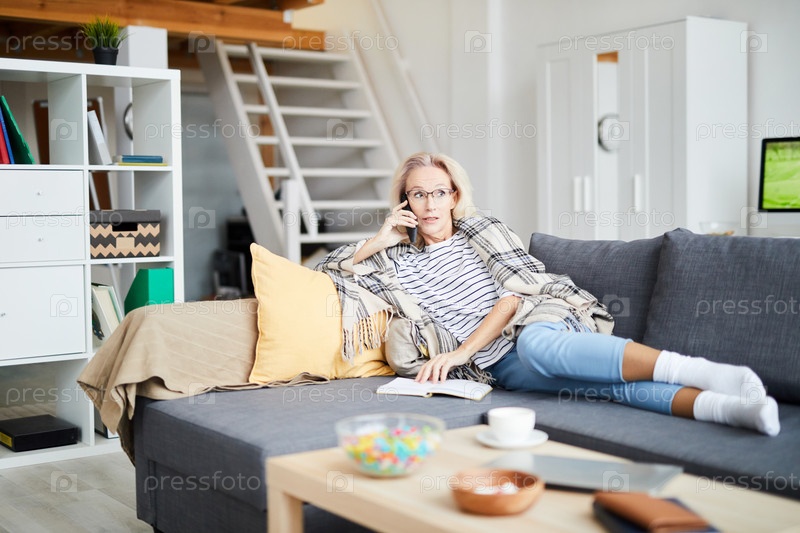 Говорить по телефону дома Женщина