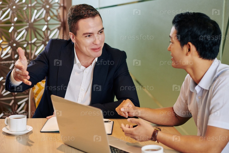 Бизнесмен разговаривает со своим коллегой