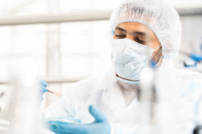 Арабский лабораторный работник изучает вирус