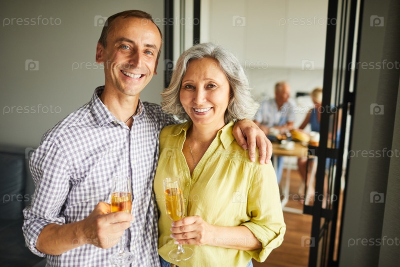 Старшая пара позирует на вечеринке Happy