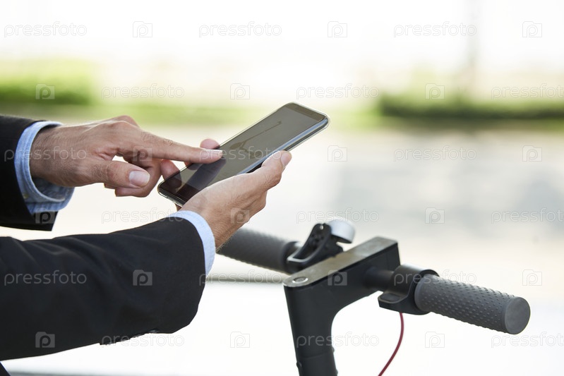 Мужчина выбирает скутер в интернет-магазине по телефону