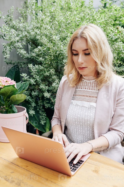 Молодая женщина работает над ноутбуком